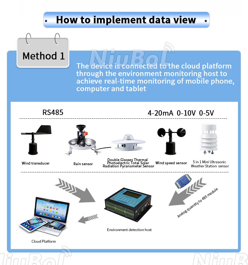 Le pyranomètre ( capteur de rayonnement solaire ) est un capteur utilisant le principe de l'induction thermoélectrique, conçu pour mesurer avec précision le rayonnement solaire. Il mesure avec précision le rayonnement total, le rayonnement réfléchi, le rayonnement diffusé, le rayonnement infrarouge, la lumière visible, le rayonnement ultraviolet, le rayonnement à ondes longues et d'autres types de rayonnement solaire. Largement utilisé dans l'utilisation de l'énergie solaire, la météorologie, l'agriculture, le vieillissement des matériaux de construction, la pollution atmosphérique et d'autres domaines, il fournit des données fiables pour la mesure de l'énergie du rayonnement solaire.