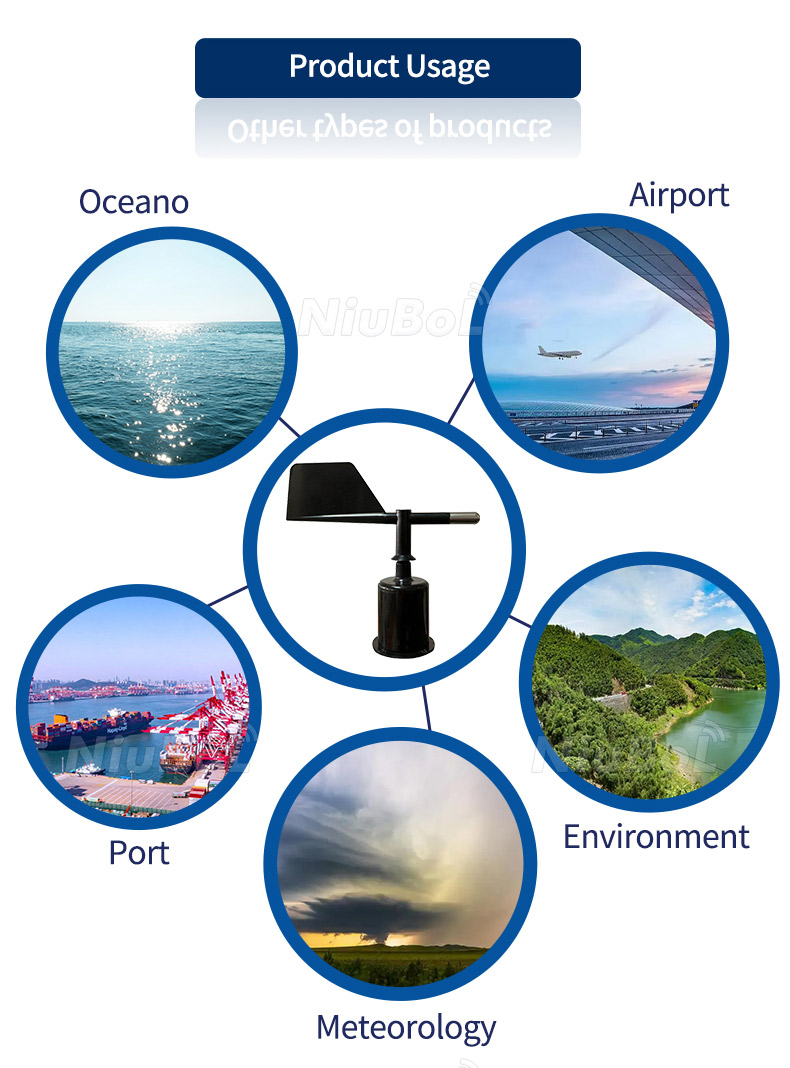 - Large portée : Couverture complète de 0 à 360° sans angle mort, répondant aux besoins de mesure de la direction du vent dans divers environnements.