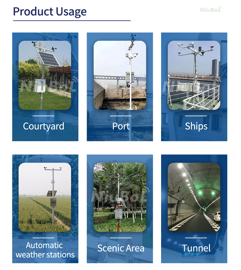Les capteurs de vitesse et de direction du vent à ultrasons peuvent être largement utilisés dans les domaines de la météorologie, de l'océan, de l'environnement, des aéroports, des ports, des laboratoires, de l'industrie, de l'agriculture et des transports.